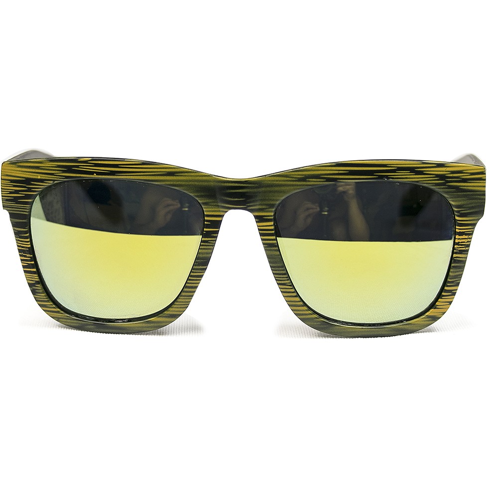 Çerçeve : Siyah çerçeve üzerine sarı renk ahşap desenli güneş gözlüğü.