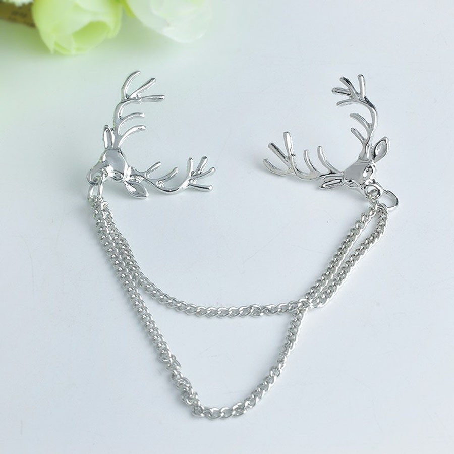 Desen şekli : Geyik Başlı Çift Zincirli Yaka Ucu Broşu