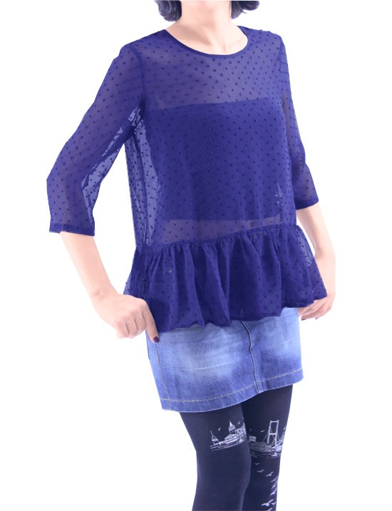 * Lacivert şifon puantiyeli yarım kollu buliz.